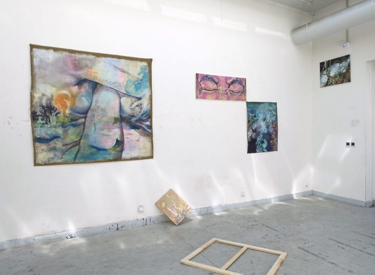 J’espère, et puis je désespère, des allusions amères dans la voix de mon père, acrylique et huile sur tissu, 147 x 154 cm, avril 2025.